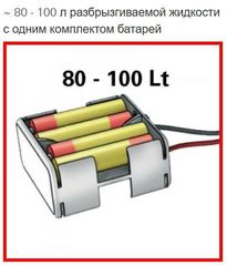 - ~ 80 - 100 л разбрызгиваемой жидкости с одним комплектом батарей