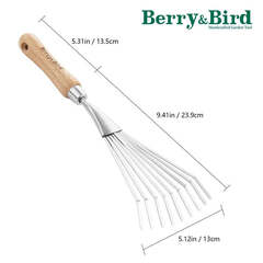 Инструмент изготовлен из высококачественной стали с плоскими зубьями, устойчив к ржавчине, долговечен и легко очищается. Этот садовый грабли с 9 скругленными зубьями идеально разбивает и рыхлит почву на мелкие кусочки, позволяя воздуху и воде глубоко проникать в землю. Они отлично подходят для работы под кустами, не повреждая корни и низкие ветви.