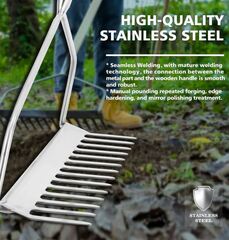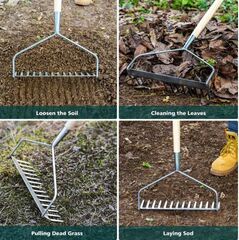 В отличие от обычных грабель для листьев, эта модель разработана специально для работы с грунтом. Ее прочная головка из высококачественной нержавеющей стали оснащена 14 жесткими зубьями. Каждый зубец длиной 9,9 см тройной сварки для максимальной прочности, что позволяет без труда проникать в любой тип почвы и эффективно разрыхлять даже самые плотные участки. Ширина рабочей части в 37,6 см гарантирует быстрый охват большой площади, значительно повышая вашу производительность.