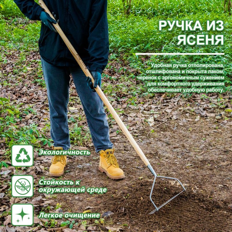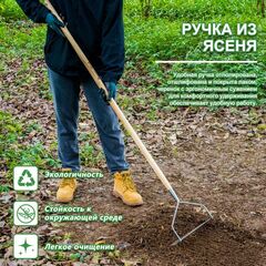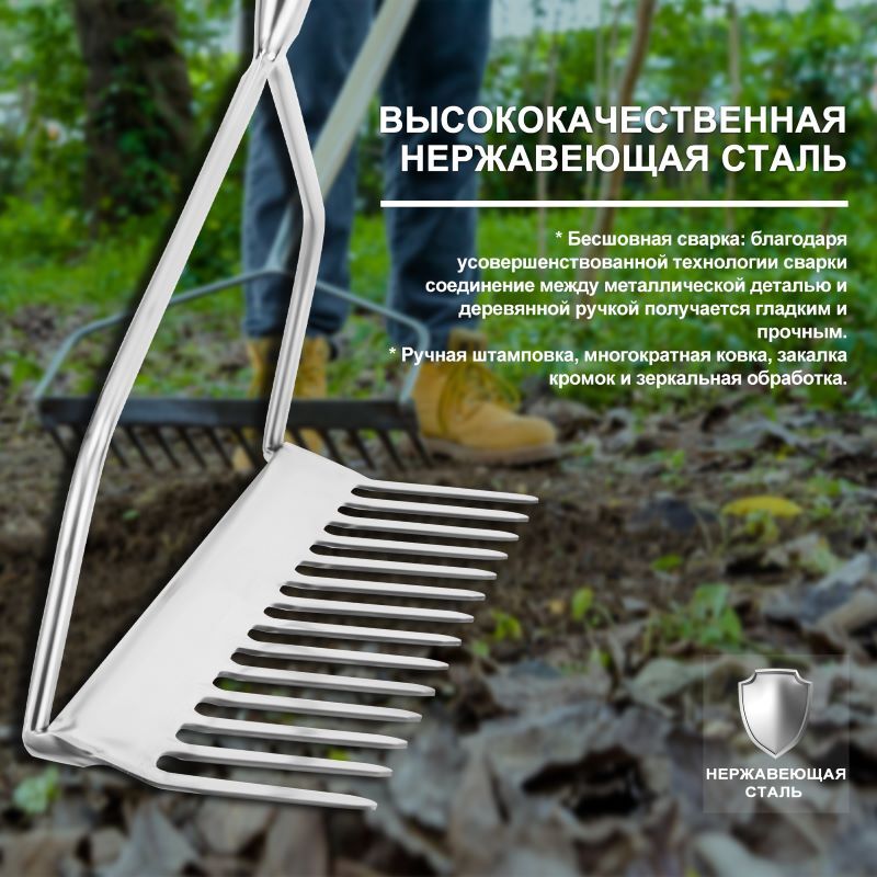 Длинная ручка из сертифицированного ясеня (160 см) имеет эргономичную форму, что позволяет работать, не наклоняясь, и избавляет от дискомфорта в спине. Она идеально ложится в руку, снижая усталость и предотвращая травмы даже при длительном использовании. Забудьте о налипании почвы и ржавчине – эти грабли созданы, чтобы служить вам долгие годы, обеспечивая легкую и приятную работу в саду.