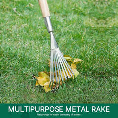 Инструмент изготовлен из высококачественной нержавеющей стали с плоскими зубьями, устойчив к ржавчине, долговечен и легко очищается. Эти садовый грабли с 9 тупыми зубьями идеально разбивают и рыхлят почву на мелкие кусочки, позволяя воздуху и воде глубоко проникать в землю. Они отлично подходят для работы под кустами, не повреждая корни и низкие ветви.