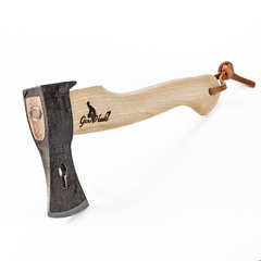Топорище этого кованого топора производится исключительно из древесины зимней рубки. Горный ясень отличается необычно высоким качеством, древесину высушивают в течении 3 лет. После сушки ясень сохраняет свою природную эластичность не деформируется и хорошо выдерживает высокую температуру и влажность. Голову топора насаживают с помощью пресса и расклинивают деревянным и трубчатым металлическим клином.