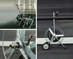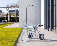 Шланговая катушка для регулярного использования на небольших и средних участках. Изделие полностью изготовлено из оцинкованной огнем и коррозионно-устойчивой стали. Пластмассовых частей не имеется.