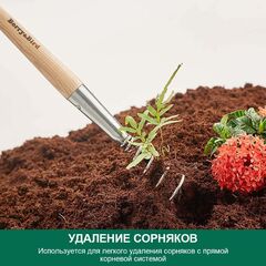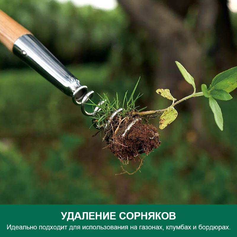 Инструмент для прополки с удлиненной ручкой в форме штопора подходит для удаления сорняков в семейном саду, небольшом саду, на патио и газоне. Его можно использовать для большинства садовых сорняков, проникая до корня и позволяя удалять стойкие сорняки без стеблей.