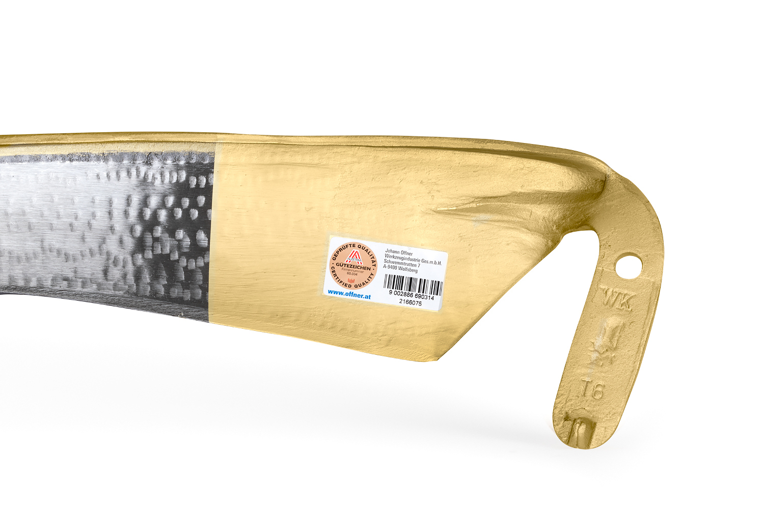Ручные косы поставляются прямо с завода производителя Johann Offner Werkzeugindustrie Ges.m.b.H. из города Вольфсберг (Wolfsberg) Австрия.На пятке выбито фирменное клеймо ORIGINAL 2 RINDER SENSE с тыльной стороны, с лицевой стороны две коровы
