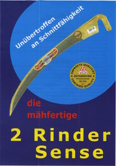 Ручные косы поставляются прямо с завода производителя Johann Offner Werkzeugindustrie Ges.m.b.H. из города Вольфсберг (Wolfsberg) Австрия.На пятке выбито фирменное клеймо ORIGINAL 2 RINDER SENSE с тыльной стороны, с лицевой стороны две коровы