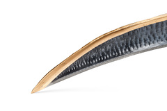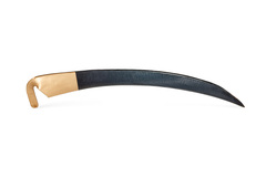 На косе наклейка Machfertig - это означает что инструмент готов к работе сразу после приобритения. Достаточно пройтись оселком.