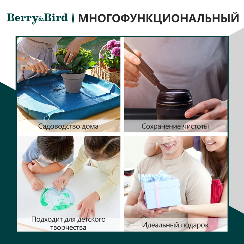 Накройте свою рабочую область, такую как пол, стол или столешницу, этим ковриком для растений; тогда вы сможете свободно работать с вашими растениями и не беспокоиться о том, что испортите пол или стол.