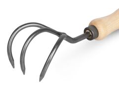 Культиватор имеет три мощных крюкообразных зубца, предназначен для рыхления почвы и удаления сорняков и корней.