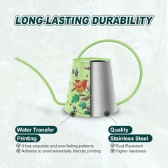 Специальное украшение и лучший подарок: Поверхность лейки из нержавеющей стали с использованием процесса водопереносной печати с яркой иллюстрацией малиновки, красивая и привлекательная. Он не только подходит для всех видов комнатных или уличных растений, особенно суккулентов, но также может быть использована в качестве достойного украшения вашего дома или сада, чтобы создать вокруг вас свежую и естественную садоводческую атмосферу. Более того, это прекрасный подарок для вашей семьи, друзей или любого любителя растений!