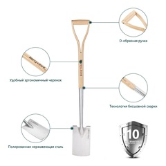 эта мощная лопата для копания сделана из высококачественной нержавеющей стали. Она прочная и долговечная; даже если ее использовать для высокопрочной работы, она не согнется. Отлично подходит для глубокого разрезания почвы, вы можете быть уверены, что эта лопата для копания разрушит самые сложные части вашего сада. После полировки нержавеющей стали можно уменьшить прилипание грязи, и ее легко чистить. Этот инструмент прослужит вам 10 лет и более!