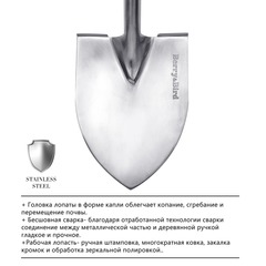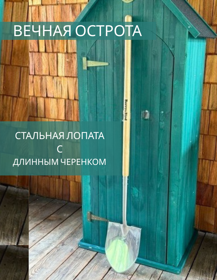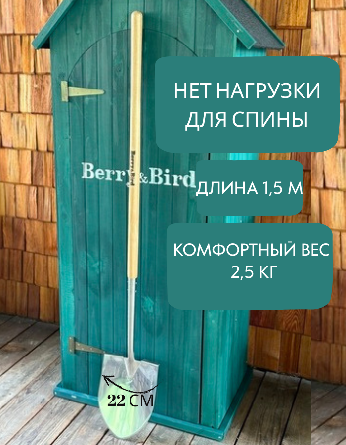 Вас ждёт штыковая лопата Berry&Bird — не просто инструмент, а верный помощник в саду, огороде или кемпинге. Созданная для самых сложных задач, эта лопата сочетает в себе надёжность и элегантный дизайн. Лезвие из закалённой нержавеющей стали легко справляется с твёрдыми и каменистыми грунтами, оставаясь острым и блестящим долгие годы. Прочный черенок из длинноволоконного ясеня обеспечивает удобство и снижает нагрузку на спину, что делает работу комфортной даже при интенсивных нагрузках. Berry&Bird — это выбор тех, кто ценит долговечность, качество и стиль в каждой детали. Приобретая эту лопату, вы получаете не только функциональный, но и эстетически привлекательный инструмент, который подчеркнёт вашу любовь к земле.
