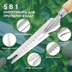 Наш инструмент для прополки используется не только для удаления сорняков с глубокими корнями, но также очень подходит для пересадки, посадки, резки, пиления, лопаты, рыхления почвы, измерения и даже как открыватель для бутылок — дизайн «пять в одном».