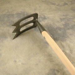 Вы тянете инструмент к себе, чтобы вырезать корни и удалить бурьян, в то время как острое лезвие разбивает комья земли.