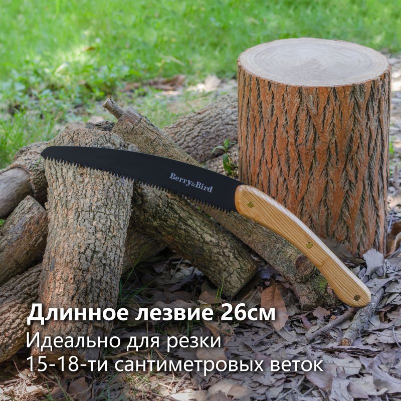 Ручка садовой пилы изготовлена из ясеня, полученного из лесов с сертификатом FSC, и имеет эргономичный, обтекаемый, нескользящий дизайн. Обеспечивает комфортное и надежное ощущение при резке/пиле. Оснащена отверстиями для подвешивания, что позволяет легко вешать её на стену.