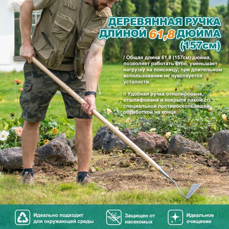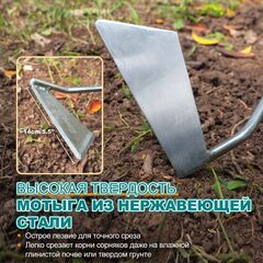 Угловая мотыга — это многофункциональный садовый инструмент для вегетационного периода. Легко обрабатывайте цветники, подготавливайте ряды для семян, создавайте небольшие водные канавки и смешивайте почву вокруг кустов и клумб. Независимо от того, являетесь ли вы опытным садоводом или новичком, этот инструмент станет вашим лучшим другом в саду.