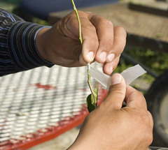 Для того чтобы в полной мере использовать уникальные характеристики ленты Buddy Tape, мы рекомендуем постепенно растягивать ее по мере нанесения. Хотя существует естественная тенденция растягивать обычную пленку до максимального размера, а затем просто оборачивать ее, это может привести к врезанию в растущее растение, как и происходит с обычными прививочными лентами. Лента Buddy Tape не имеет этого недостатка.