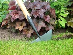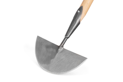 Инструмент имеет стальное полотно в виде полумесяца с заостренной внешней кромкой и т-образной рукояткой. Предназначен для удобной и аккуратной обработки края газона, прорезания дорожек или мест посадки, а также нарезания дерна.