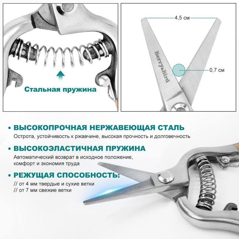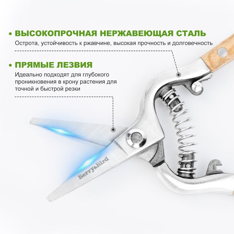 БЕЗОПАСНОСТЬ: садовые ножницы оснащены профессиональным замком, который обеспечивает надежное закрытие острых лезвий, когда они не используются. Положите садовые секаторы в ящик для инструментов, комнату для рассады, садовый сарай и теплицу для удобного и безопасного хранения. Избегайте случайных травм.