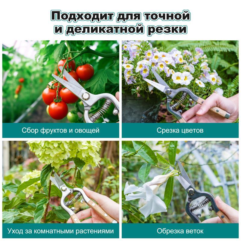 ШИРОКИЙ СПЕКТР ПРИМЕНЕНИЯ: Ножницы для обрезки отлично подходят для обрезки сада, сбора фруктов, обрезки цветов, обрезки горшечных растений, обрезки боковых ветвей, прививки растений, обрезки бонсай, обрезки сухих ветвей, посадки в помещении и на открытом воздухе, обрезки теплиц. Лучший подарок для друга-садовода!