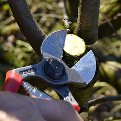 Благодаря двум лезвиям секатор подходит для фруктовых деревьев, делая четкие и точные срезы, не портя слой камбия, - главное условие для заживления раны.