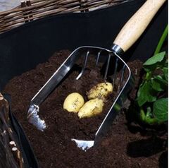 Этот совок для сбора урожая с ручкой посередине идеально подходит для сбора картофеля, выращенного в контейнерах, во время уборки картофеля. Перекладина на конце зубцов предотвращает прокалывание закопанного картофеля, позволяя поднимать урожай без повреждения. Этот инструмент идеально подходит для выращивания в контейнерах.