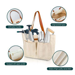 Эта сумка для инструментов изготовлена из холщовой ткани, которая очень мягкая и прочная. Она достаточно прочная, чтобы выдерживать постоянный износ инструментов. Эта сумка устойчива к загрязнениям и износу, имеет высокую грузоподъемность, экологична и может использоваться повторно.