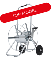 Шланговая катушка для ежедневного использования в профессиональном секторе: питомниках, парках, спортивных сооружениях, бассейнах, мастерских и промышленных предприятиях. Изделие полностью изготовлено из оцинкованной огнем и коррозионно-устойчивой стали. Пластмассовых частей не имеется.
