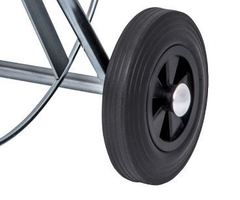 Тележка очень устойчивая благодаря использованию вспененных пневматических колес на стальных колесных дисках и наличию опорной рамы. Оснащена удобной высокой ручкой.