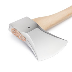 Отполированная голова топора крепится на рукоятке четырьмя клиньями, один деревянный, два трубчатых и один поперечный - это сделано для того, чтобы во время соревнований исключить возможность слета полотна с топорища.