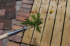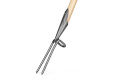 Вилка с двумя коваными стальными зубцами и рычажным упором предназначена для устранения крупных сорняков на посадочных площадях, газонах и дорожках. Имеет удобную т-образную рукоятку из ясеня длиной 76 см.