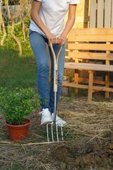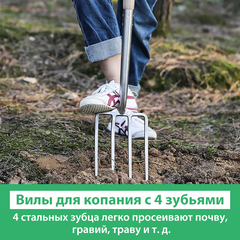 На 40% легче, чем обычные вилы для копки. Идеально подходит для женщин-садоводов, которым может быть сложно работать с тяжелыми инструментами. Прочные зубья копательной вилки способны проникать в проблемные почвы, которые лопата может не в состоянии разрезать. Копательная вилка может использоваться для "перекопки" земли или просто для рыхления участка перед копанием с помощью лопаты. Эта вилка подходит для перемещения листьев, соломы и сена в саду, где требуется удобрение, или для переворачивания почвы в грядках, компосте или отходах.